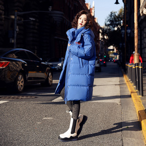 羽绒服女冬中长款小个子2021年新款时尚白鸭绒蓝色...
