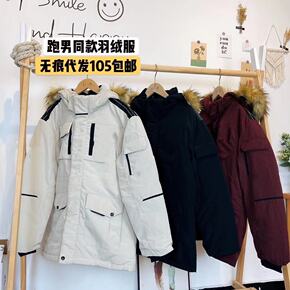 21冬季男女拉链加厚白鸭绒潮牌羽绒服韩版中长款狐狸...