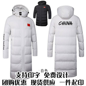 中国队加长款过膝运动大衣羽绒棉服外套男女儿童足球冬...