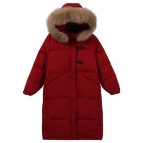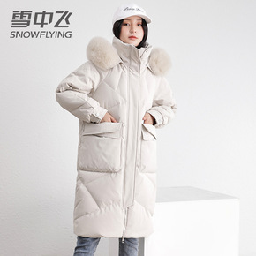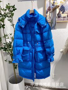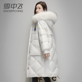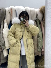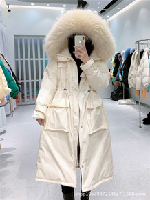 2021韩版派克服过膝长款羽绒服女风衣款白鸭绒外套...
