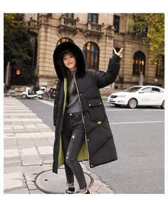 大码羽绒棉服女2021新款长款过膝简约时尚保暖连帽...