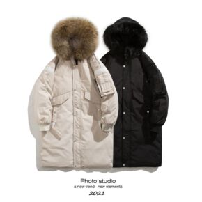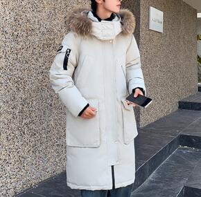 羽绒服男士中长款2021新款冬季加厚学生工装大码过...