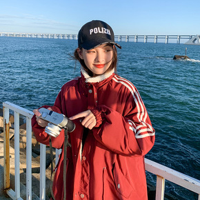 现货秒发韩国东大门2021新款超大毛领加厚拼接撞色...