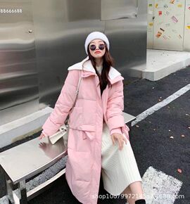 粉色羽绒服女冬中长款2021年新款韩版加厚宽松显瘦...