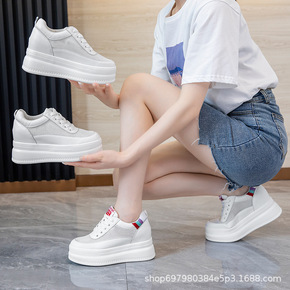 8cm内增高女鞋运动休闲鞋透气网面女士坡跟波鞋韩版...