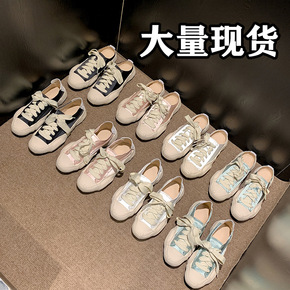 2022春季新款低帮厚底帆布鞋女粘胶鞋帆布现货平跟...