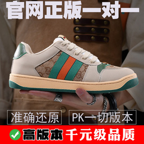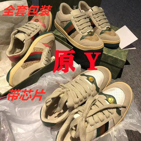 带芯片G家~高版本网红同款小脏鞋女男复古真皮做旧老...