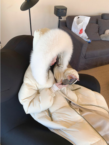 貉子大毛领羽绒服女中长款2021冬季新款过膝收腰加...