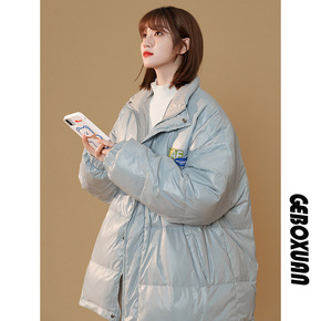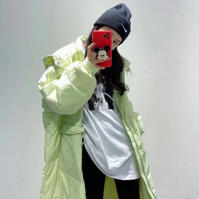 冬季新款宽松加厚外套学生运动风连帽长款羽绒服女厂家...