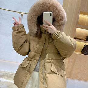 2021新款工装派克服羽绒服女中长款韩版宽松真貉子...