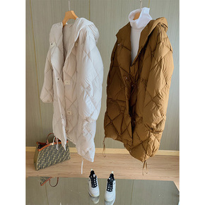 衣录预售~稀缺95狮头白鹅绒!冬装保暖菱格长款羽绒...