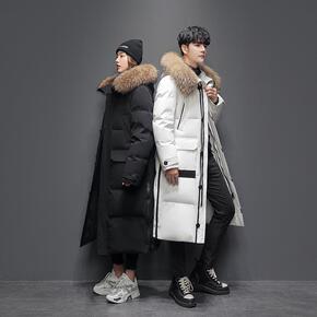 羽绒服男士中长款冬季过膝真毛领派克服加厚90绒白鸭...