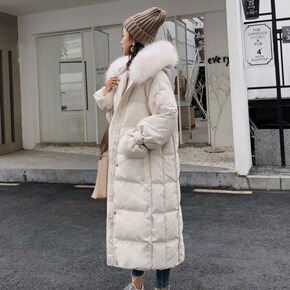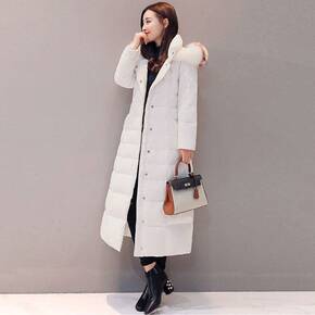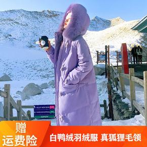 羽绒服年新款女冬中长款真狐狸大毛领过膝韩版白鸭绒网...