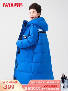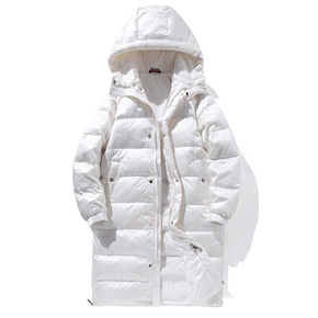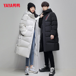 鸭鸭白色长款羽绒服情侣款2022年新款连帽韩版休闲...