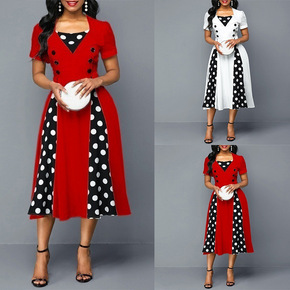 亚马逊wish女装欧美2021新款圆点拼接大摆赫本...