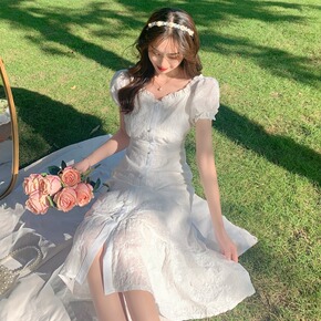 2021年速卖通亚马逊优品水溶绣花蕾丝木耳边连衣裙...