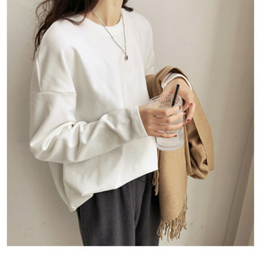 白色打底衫短款T恤女长袖2021秋装纯色内搭棉质紧...