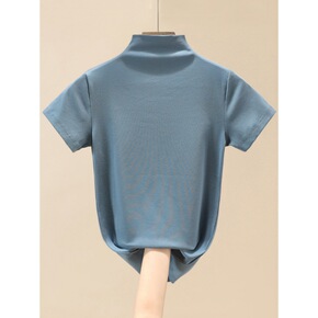 一件包邮2022新款半高领咖啡色T恤短袖修身夏装半...