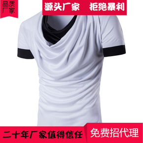 青少年个性时尚夏季潮流短袖T恤男士修身打底衫堆堆领...