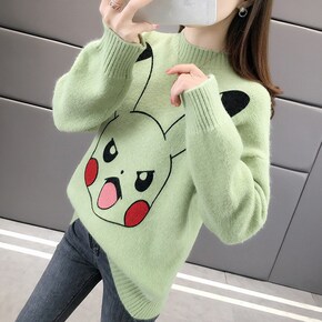 2021秋冬新款学院风卡通套头毛衣女韩版皮卡丘半高...