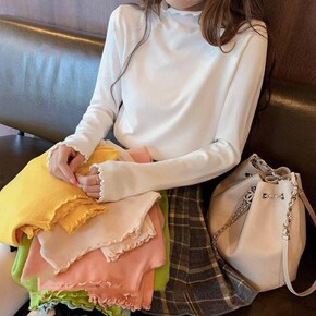 2021秋季新款针织衫女半高领毛衣内搭打底衫又甜又...