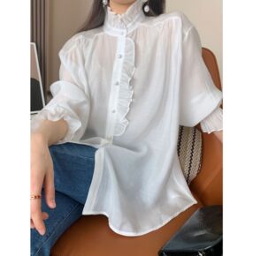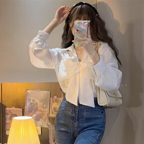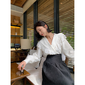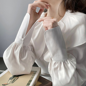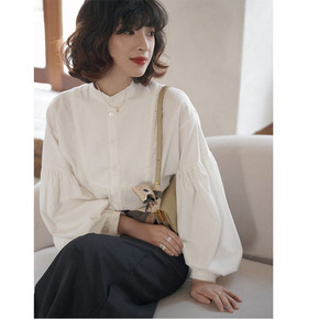 2021秋 经dian推荐 泡泡袖上衣女复古宽松白...