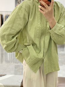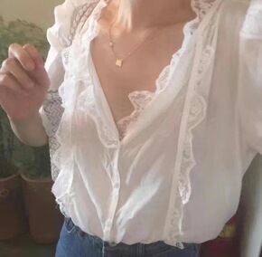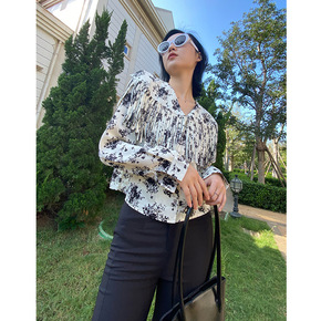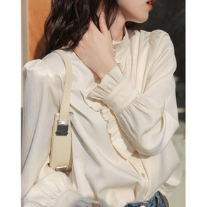 im向自 木耳花边衬衫上衣女2022春别致褶皱肌理...