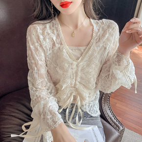 2022春季法式宫廷风精致别致泡泡袖衬衫女设计感小...