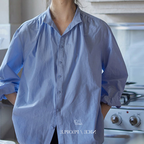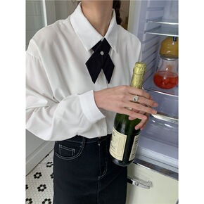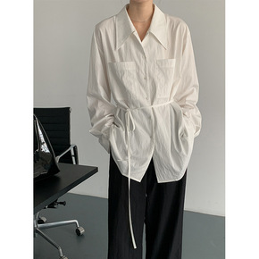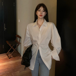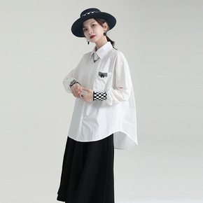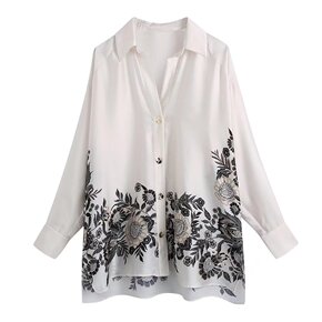 外贸2022欧美春新款宽松简约风翻领长袖白色宽松印...