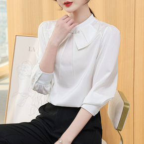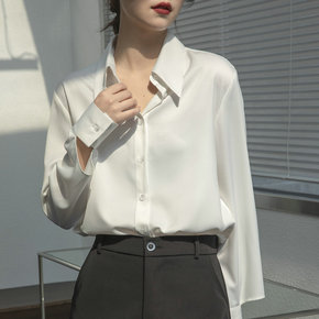 缎面衬衫女高级感2022新款长袖高端抗皱气质衬衣免...