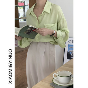 #实拍秋季新款韩版长袖薄款衬衫女上衣...