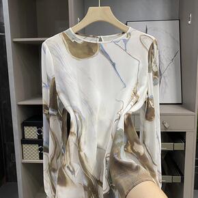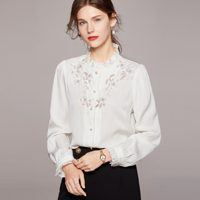 2022ss春季叠穿可代发韩版甜美小立领女装桑蚕丝...
