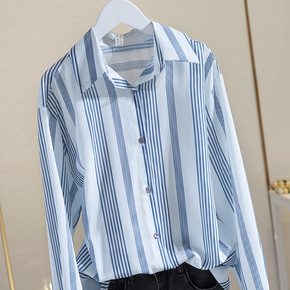 春秋新款网红减龄条纹拼接衬衫初秋时尚设计感衬衫...