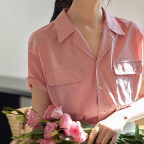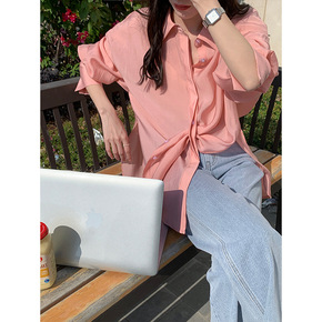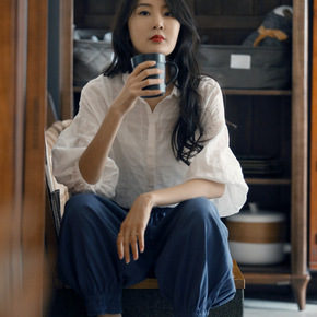 雅沐兰 薄软 定制棉质肌理暗格宽松休闲衬衣文艺女夏...