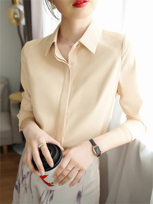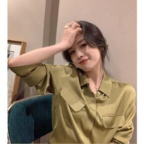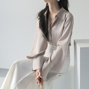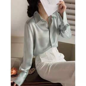 重磅缎面仿真丝衬衫女春秋季新款2022年高级感衬衣...