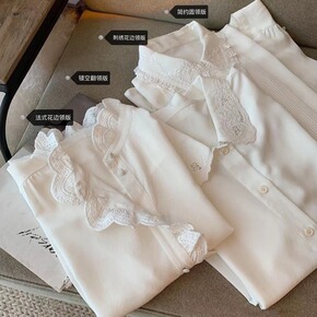 2022春夏新款白色蕾丝长袖衬衫亚马逊wish时尚...