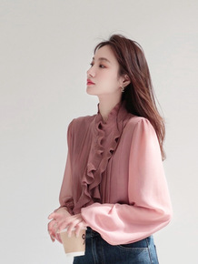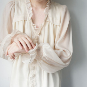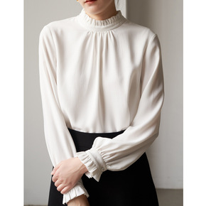 UMOOIE 双绉 轻盈乔其纱袖 荷叶边衬衫 ...