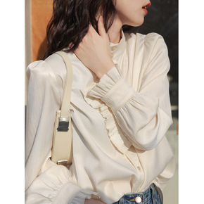 2022春季法式宫廷风精致别致泡泡袖衬衫女设计感小...