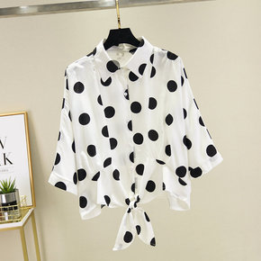 白色大波点雪纺衬衫女宽松大码衬衣薄款上衣搭配吊带裙...