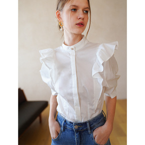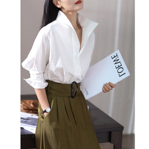 法式西装领白衬衫女2021夏季新款设计感小众大码上...