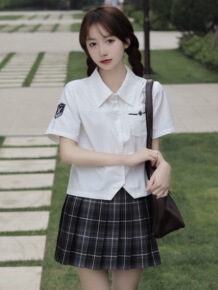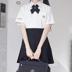 【】原创日系jk制服短袖中学校花刺绣风琴褶基础款白...