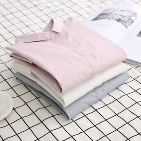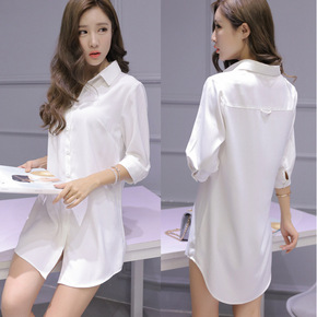 性感男友BF风衬衫睡衣中长款白衬衫女宽松衬衣七分袖...