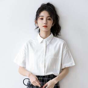 少年感衬衫女夏夏季短袖白色衬衫女学生韩版宽松外穿百...