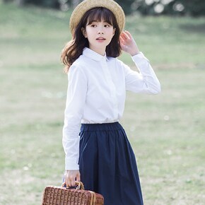 童装韩版新款女童衬衣白色中大童长袖衬衫百搭小学生上...
