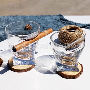 雪茄杯玻璃人工吹制厚底旋转威士忌酒杯雪茄槽啤酒杯酒...