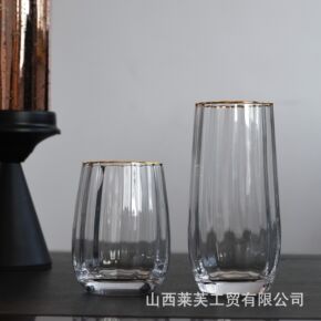 工厂直销新款加厚创意轻奢简欧竖纹金边玻璃杯果汁杯威...