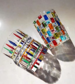 现货直供网红扭纹折纸威士忌杯洋酒杯创意个性金边彩色...