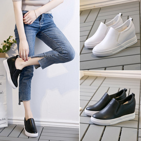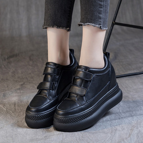 2022春秋头层牛皮女单鞋内增高休闲女鞋坡跟乐福鞋...