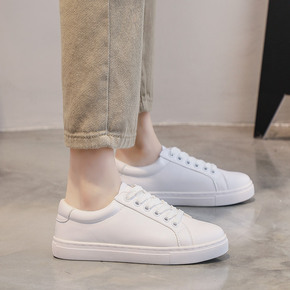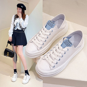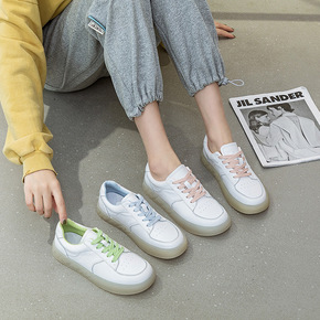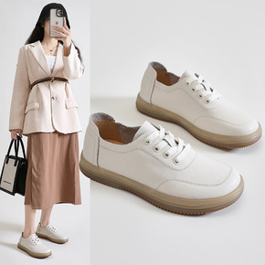春夏时尚平跟休闲女鞋系带单鞋韩版小白鞋女圆头皮鞋平...