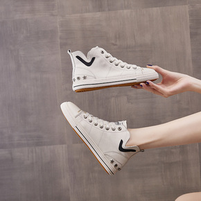 春2022新款小白鞋女鞋百搭高帮鞋秋冬季厚底鞋子老...